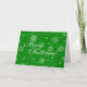 Standard-hälsningskort med texten "God jul!" över en grönt och vit snöflingbakgrund från BigTexFunkadelic. Insidan är tom, så du kan lägga till ett speciellt meddelande för varje person i din distributionslista. © 2019 BigTexFunkadelic