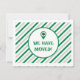 Markera din nya plats i Texas för alla dina vänner och din familj med det här annonskortet. Rensad bakgrund påminner om gammal luft-post brev i olika skuggor. Markör på framsidan inkluderar delstaten Texas. Rum på baksidan för din nya adress bild och ditt foto. Kommer i bränd orange, maron, rött, statlig flagga-blått, grönt, lila, orange, svart och gult - mest baserat på statlig färg. Matchande produkter är tillgängliga.