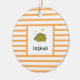 Elegant, modernt och sött baby-foto runt ornament på orange rand mönster. Den här mallen innehåller en bra illustration av Grönt baby dinosauer som sover under guld gultens stjärnor med anpassningsbar Baby namn. Underbar för både pojke och flicka. Perfekt för alla säsonger!