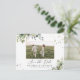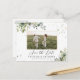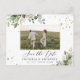 Grönt Spara Datum med Foto Postkort. Detta stilrena och eleganta spara datum postkort har vacker handmålad akvarell grönska. Hitta matchande föremål i Watercolor Eucalyptus Floral Greenery_HB1 Kollektionen.