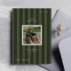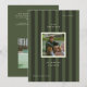 Examensfotots annons kort med en sportig, grön randig bakgrund, perfekt för idrottare.