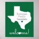 Låt hela familjen veta vart man ska gå för den årliga återföreningen med Texas statsformssymbol. Innehåller utrymme för din familjs namn och ett välkomnande. Finns i Tech Red, Aggie maroon, Longhorn Burnt orange, Eagle grönt, royal blue, Miner orange och Horned Frog lila. Anpassade genom att ändra färg på statsformen, hjärtat eller texten. Matchning av tillgängliga produkter, inklusive inbjudningar.