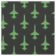 En enkel upprepning mönster av grönt T-38s på svarta gör att detta tyg är ett underbart val för party skjortor, bandaner, filtar och andra sportskytteprojekt i jet.