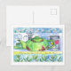 Ett vykort för söt med en tidsinställning med en grönt tekanna, kopp, en tetin, grönt te löv längs grund och jasmin blommor längs överdelen som ritas med bläck och målas med vattenfärg. Verkligen som är bra för vykortsutbyte, pennpennor och att skicka ett tankebrev till någon speciell. Det är trevligt att få något färgstarkt och snällt i posten!