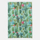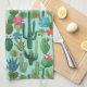 Grönt Teal Blooming Cacti Mönster Kökshandduk