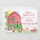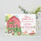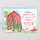 Farm Barnyard Animals och Grönt Tractor Födelsedagsfest inbjudan med en röd lada, grönt traktor och vidsträckta vattenfärgsbarnyarddjur som ko, gris och tupp i en vagn. Den här inbjudan kan vara personlig för barn eller flickor i alla åldrar eller perfekter på en tredje födelsedag "Tre-I-E-I-O". Dina vänner kommer att vilja skjuta på för en roligt! Konstruktionen av gårdsscenen fortsätter på baksidan där du kan lägga till barn-åldern till flagga på traktorn.