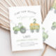 Grönt Tractor Farm Födelsedagsfest inbjudan, starta traktor B day