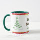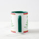 Det här är en söt julklapp mugg, med stilistisk konst bilder av en grönt Helgdag med stjärna på vardera sidan, och den konstnärliga texten i grönt gränsade till rött "God jul" i träd. Under hälsning är din anpassade text i grönt. Bilder och text placeras på en vit bakgrund, och mugg gränsas uppåt och grund med en dekorativ röd pricktrim inklädd i guld. Elegant!