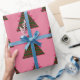 Mörk grönt träd med mörk rosa linjer på rosans pappra julomslag.