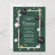 Fira julsäsongen och inbjudan, era högt värderade arbetskolleger och speciella gäster i år med denna moderna julmiddagsinbjudan som innehåller en vit gräns med svart och vitt Julgran-bauskulor över en grönt.
