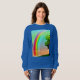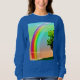 Sötskjorta i en grönt, vattenfärgen träd, mot ett blå himmel och en levande färgad regnbåge