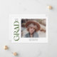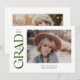 Snyggt studenten-meddelandet visar ord-graden i ett trendig i grönten längs den lämnat sidan. På framsidan finns det utrymme för ett foto av examen och deras namn, klassår och skola. Baksidan av meddelandet har plats för ett andra foto och ett kort-meddelande.