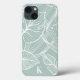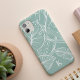 Iphone case har en vit tropiska mönster i handflatan löv över en ljust grönt bakgrund. Anpassa den med ditt ursprungliga, fet, enkelt och modernt teckensnitt. En snyggt, chicens telefonväska - perfekt till sommaren!