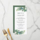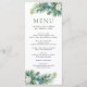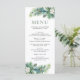 Peacock-tema Indiska bröllop-menyn med vackra fjädrar och tropiska löv.