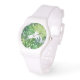Färgämnen i grönt, tropiska monster, handflatan och fern löv på vit bakgrund.