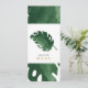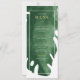 Menymall för en grönt tropiska löv bröllop-middagar. Vit bakgrund med guld accent.
