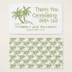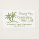 Använda den här uppsättningen affärskort med anpassning som märkre för dina bröllopsfavoriter för att tacka din gäst för att du är här - slå bara ett hål till slut och koppla till dina favoriter med matchande band. Det är en enkel utformning, men eleganten har två gröntar handflatan träd med Bride & Grooms första namn och bröllop-datumet under. Längs träd är ord "tack för att du firar med oss". På motsatt sida står handflatan i mönster som står i spetsen. Fungerar bra för tropiska områden, havsområden, hav eller strandområden.