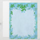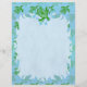 Grönt havssköldpadda i utkanten av stil mot incheckad blå bakgrund. Obestruket papper. Tomma brevhuvud pappert med stiliserad låga gräns.