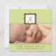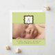 Detta moderna födelsemeddelande visar att baby befinner sig i början av ett ram med rum under fotot för födelseinformation. Ange i gröntens bakgrund.