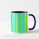 Kreativets ljusa grönt strimlade mugg. Bright lodrät rand mugg. Ursprunglig strimlad utformning av mugg färg. Konstnärligt unikt rand mugg. Den branta paletten med grönt strimlade mugg. Geometrisk utformning av linjer mönster.