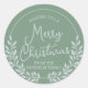 Klassiska, runda klistermärken under vintern grönt med runda grått foliage ram och "God jul" i grått-manusettering. Två storlekar är tillgängliga.