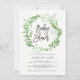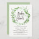 Den här eleganten har en botanisk babyduschdesign med en grönt av löv, på en vit bakgrund. Vi har använt konst från LABF-skapelser.