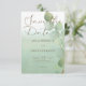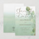 Den här designen har en mjuk vattenfärg i grönten som tvättar bakgrund med en enda eukalyptus för ett modernt utseende. Den ingår i Grönten Vattenfärgen Tvättar Eucalyptus Modern Bröllop Suite med kort skapat av enbart Farmhouse Press.