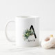 Grönt vattenfärgsblomma, monogram, vitt kaffe mugg