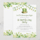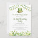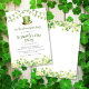Denna festliga St Patrick's Day-festinbjudan har vattenfärggröna serpentiner, läppgubbe hatt och shamrock-kant. Lätt att anpassa med din text genom att klicka på "Personifiera".