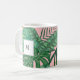 Grönt vattenfärgstropiska löv monogram kaffemugg