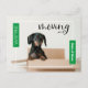 Berätta för alla dina vänner om ditt drag och din ny adress med det här vackra tillkännagivandet om flytta av hund. Han ser verkligen ut som redot att ta sig till det nya huset! Anpassa texten med namnen, flyttningsdatum, meddelande och nytt adress. Finns i rött, grönt, blått, lila, grått och guld. Finns även som platta kort.