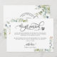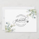 Berätta för familj och vänner den fantastiska nyheten om din bröllopsdag med detta eleganta "Vi är gifta"-kort. Känn dig fri att lägga till ditt eget meddelande, vårt är bara ett exempel. Handskrivna kalligrafidetaljer och utsökt akvarell blomstergrönska omsluter ditt meddelande. Lövverk och blommor i salvia, grönt, dammig blå, marinblå och koppartoner. Baksidan av kortet har vackra, ömtåliga hörnelement av grönska och en elegant dekorativ logotyp i mitten med brudens och brudgummens fullständiga namn.