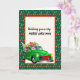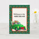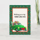 En grönt vintage lastbil lastad med presenter driven av tomten. Kortets baksida är täckt i bilden av ram framför och ändrar enkelt typsnittet efter eget val. #christmas #vintagetruck #greentruck #Tomt #presenter