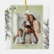 Den här fotojulprydnaden har mutat gröntens vinter-löv med vattenfärg. Anpassa den här elegantens julprydnad med ditt familjefoto.