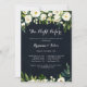 Den här gröntens vita blåa kväll före inbjudan till repetitionsmiddag är perfekt för en rusningsevenemang. Konstruktionen har vattenfärgade vita peonier med grönt i mörk blått bakgrund.