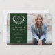 Ett högtidligt men modernt fotografmeddelande från studenten för att fira dem som får en Juris Doktor-examen. Med ett fullt-blekt foto med övertäckning av färg och lagskalor (med förkortningen "JD") omgiven av en lagerkrans i vitt. Malltexten för student är helt och hållet anpassade, så teckensnittet storlekt, stil, färg och placering kan ändras. Baksidan har en heltäckande färgad och malltext för ett längre meddelande. Om du inte vill ta med någon text på baksidan raderar du den innan du beställer den. Om du vill ha ett foto på baksidan av kortet tar du bort både bakgrunden till färgaden och malltexten och överför ett eget foto. Designen finns i andra färg i min butik.