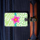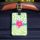 Njut av den här snyggtens bagagemärke. Färgfulla zebra ränder- och cheetah-skinsar för grafisk design är en av de varmaste konst- och designtrenderna och är extremt populära från mode till hemdekan. Denna sofistikerade grönt och vita med turkospaketteal zebra och cheetah-trycksamling är en av flera färg-kombinationer som finns tillgängliga. En blomma som målats med fuchsisk rosa är centrerad på djurets avtryck. Ett grönt kalkområde är på baksidan för din kontaktinformation. Detta är underbart för bagage, ryggsäck eller bärbar fodral. Detta är helt anpassade. Gå vild med de här vildens skinsar design!