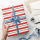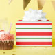Den julinspirerade utformningen har en strimlad mönster som har färg som rött, vitt och grönt. Papper som detta kan användas när man förbereder presenter eller gåvor som ges för att fira en födelsedag, ett bröllop, en årsdag eller något annat evenemang.