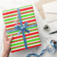 Den här jultemade designen har röd, vit och grönt i rand färgad. Papper som detta kan användas när man förbereder presenter eller gåvor som ges i firande på en födelsedag, i bröllop, på årsdag eller vid något annat evenemang.