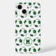 Den här roligt-fotnoten iphone case har en enkel mönster av fotbollar som har grönt och vita paneler på en anpassade vit bakgrund - anpassa med idrottsmannens monogram - av katz_d_zynes