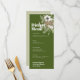I den moderna bröllop-menyn finns en vattenfärgad julbukett som är gjord av skogsblad och som har en oliv grönt bakgrund.I toppen står det "middagsmeny" i ett vitt, stort, fetstilsteckensnitt i extra. Alla andra menydetaljer finns i ett vitt sökteckensnitt. Baksidan är en koordinerande bakgrund för solid grönt.