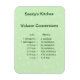 Denna magent är söt och användbar. Den har en bakgrund som är myntfull grönt med vita snurrar på den. Det finns ett volymkonverteringsdiagram med amerikanska volymer till Metric och tillbaka igen. Perfekt för någon med en kock bok från ett annat land eller någon som har flyttat till ett annat land!