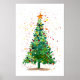 Traditionella vattenfärgsbilder av en mycket grönt jultoma med mängder av prydnadsföremål och dekoration som poster utskrift.