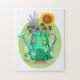 Klöver, daisy och en ljusstark gult solros ökar ornatet hos en vit grönt som kan bli levande. Ursprunglig illustration av Noël Snö.