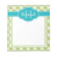 Snyggt, trendig lime green och white plaid/tartan mönster i bakgrunden, med en ljusblå etikett med anpassade namn och monogrammall.