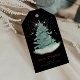 De här gröntens vita Julgran-märkre är perfekt för ett rustiskt god jul firande. Utformningen har en vacker, handmålad, vattenfärgad grönt Julgran med vita stjärnor.