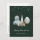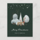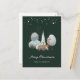 Brevkort i personligen med en vinter-scen med vattenfärg, med en buck och en doe i en snöskog och lysande stjärnor ovanför dem. Anpassa enkelt det här julvykortet i grönt med din familj namn, returadress och ytterligare text efter behov.