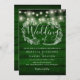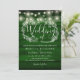 En inbjudan till ett fullbokat bröllop som innehåller söt string ljus och en delikat, handritad, rustik blommigt av botaniskt löv blad med snyggt-manustypografi, på en rustik emerald grönt-bakgrund. Anpassa med din speciella bröllopsdag. Designad av Thisisnotme©