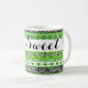 Cute och roligt är utformade som luddar vid vackra blommor, zebra-mönstrade hjärtan, rand och prickar. Snygg mönster i grönt, svart och vit på söt 16-årsdag mugg. Fullständigt anpassade, enkelt att anpassa med dina uppgifter, namn, typsnitt och text. Perfektens sweet sixteen.