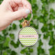 Grönt Zigzag, Grönt Chevron, ditt namn Rund Silverfärgad Nyckelring